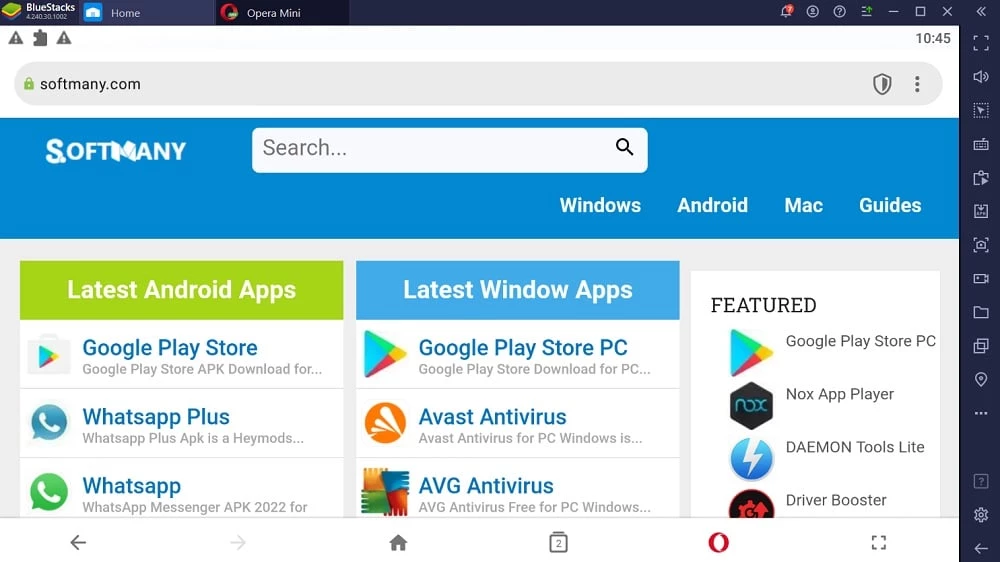 L'application Opera Mini est disponible uniquement pour Android, mais vous pouvez l'exécuter sur PC grâce à un émulateur Android. BlueStacks est l'une des méthodes les plus fiables pour télécharger des applications sur PC ou ordinateur portable. Cet émulateur vous permet d'accéder facilement à n'importe quelle application Android. Il vous suffit de suivre les instructions.